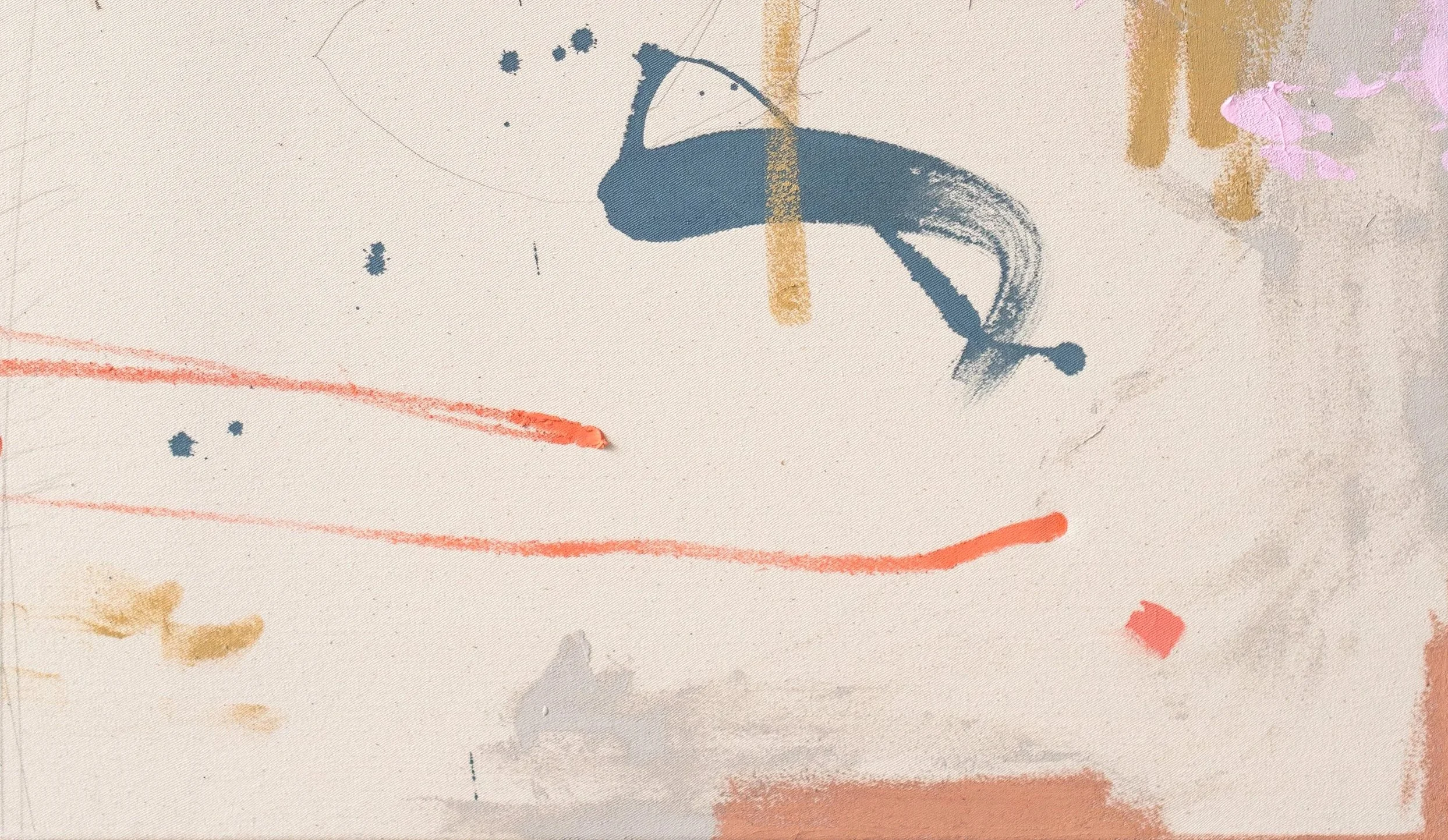 Her paintings emerge from visual field recordings, moving between drawing and painting.
